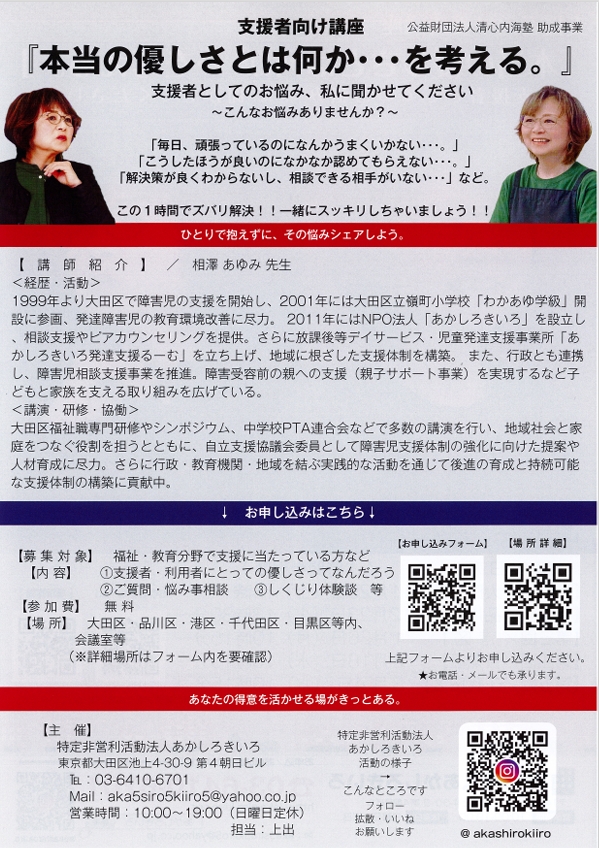 (この講座は「公益財団法人清心内海塾助成金」により開催しております。)