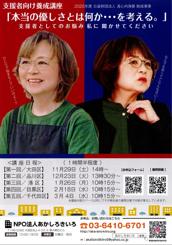 新年を迎え、支援者向け養成講座『本当の優しさとは何か…を考える。~支援者としてのお悩み、私に聞かせてください~』の場所と日時が決定しました。