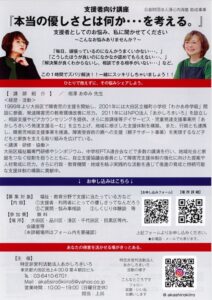 新年を迎え、支援者向け養成講座『本当の優しさとは何か…を考える。~支援者としてのお悩み、私に聞かせてください~』の場所と日時が決定しました。
